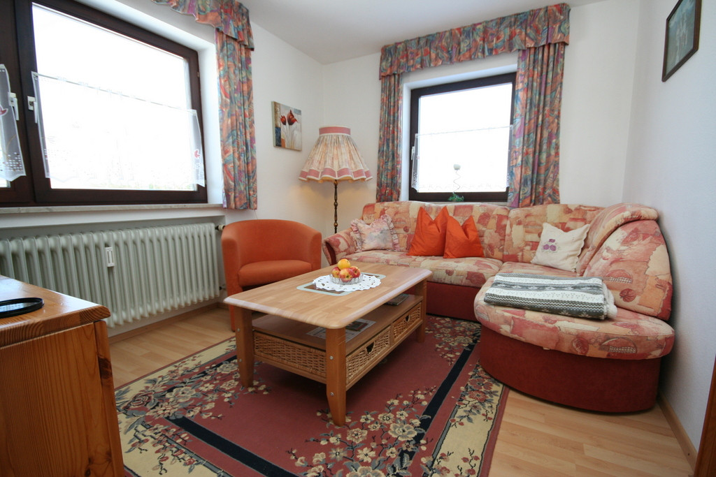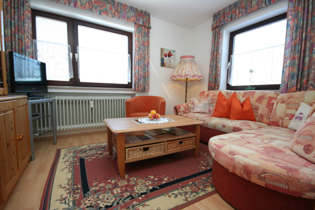 Das Wohnzimmer ist mit einer ausziehbaren Eckcouch ausgestattet. Es steht ein LED-TV mit Sat-Empfang zur Verfügung. Das Wohnzimmer hat Zugänge von der Küche und von einem der Schlafzimmer, das heißt, Sie werden im Schlafzimmer nicht vom Durchgangsverkehr gestört wenn jemand Fernsehen möchte.